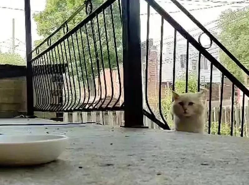 这只猫第一次出现在院子里时,瘦得像一阵风就能吹走。附近的流浪猫都知道这家人心善,院子里总有水和食物,还有个小猫窝。贾斯伯一口气吃光了盘子里的食物,像是抓住了救命的稻草。